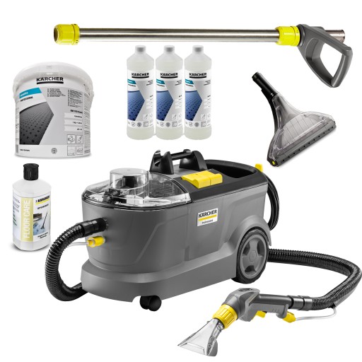 Przedmiotem sprzedaży w niniejszej ofercie jest: 1x Karcher Puzzi 10/2 w wyposażeniu standardowym (dokładne wyszczególnienie w sekcji Wyposażenie Standardowe) + dodatkowo zestaw dodatków o nazwie WASHING FULL GRATIS: 1x RM 519, 3x RM 763, 1x RM 760 10 KG, 1x dysza ręczna.