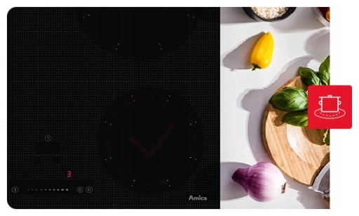 Z pewnością wielokrotnie zdarzyło Ci się używać garnków, których podstawa wystawała poza pole grzewcze. Od teraz wielkość czy kształt garnka nie mają znaczenia! W przeciwieństwie do większości płyt dostępnych na rynku, cewki indukcyjne w urządzeniach Amica nie są okrągłe, a kwadratowe, co pozwala na maksymalne wykorzystanie powierzchni płyty. Większa powierzchnia grzania to większe możliwości!
