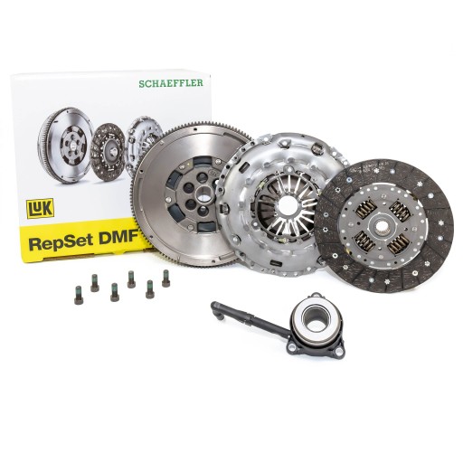 - Na produkt składa się: Zestaw sprzęgła z kołem dwumasowym, wysprzęglikiem centralnym i śrubami