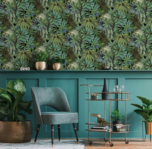 ОБОИ ТРОПИЧЕСКИЕ ЗЕЛЕНЫЕ ПАЛЬМОВЫЕ ЛИСТЬЯ, НАЦИОНАЛЬНЫЕ