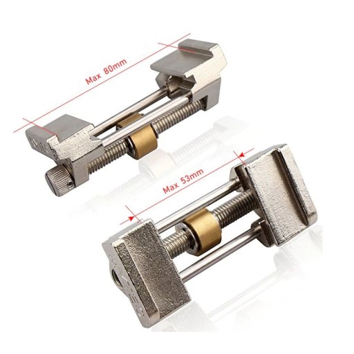 Prowadnica, prowadnik, uchwyt do ostrzenia dłut, noży, strugów z kółkiem prowadzącym z mosiądzu, mosiężnym.