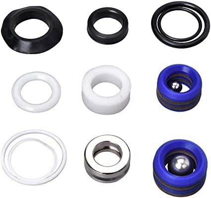 ✔️ Uszczelki skórzane i teflonowe typu V-ring: Uszczelki te są niezwykle istotne dla prawidłowego działania pomp, zapobiegają wyciekom i utracie ciśnienia. Zestaw zawiera różne rozmiary uszczelek, aby dopasować je do różnych modeli wymienionych w serii.
