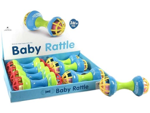 - Grzechotka posiada kolorowe elementy, w środku brzęczy kuleczka