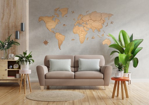 Przykłady naszych map świata we wnętrzu w kolorze Dąb Jasny.