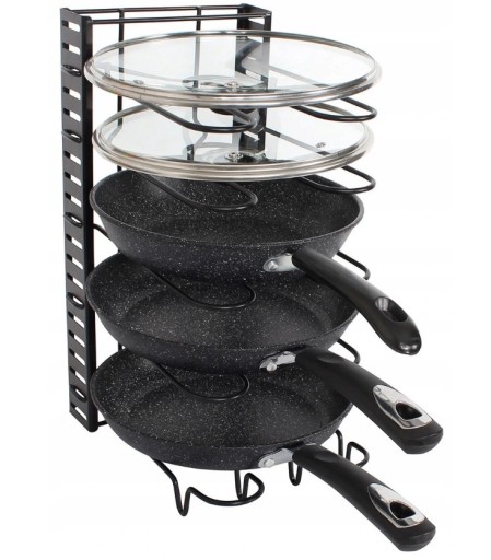 - 5-poziomowy organizer do patelni jest wyjątkowo mocny i stabilny.