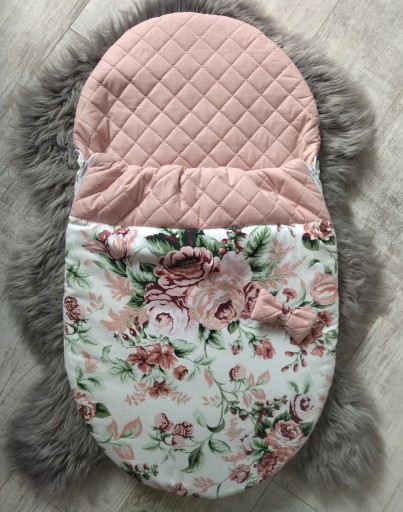 Śliczny śpiworek do wózka głębokiego, zastępujący kocyk lub kołderkę. Lekko ocieplony - idealnie nada się na miesiące wiosenne i jesienne. Można także używać w domu, w łóżeczku np. zastępując tradycyjną pościel w zimie. Śpiworek nie posiada kapturka - wykończony jest na płasko dzięki czemu można korzystać już od pierwszych dni życia dziecka. Zaokrąglony z obu stron dzięki czemu można ładnie dopasować i ułożyć w gondoli.