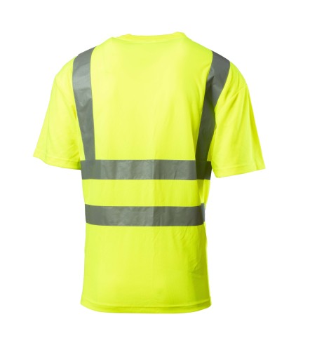 Koszulka ostrzegawcza typ T-SHIRT dla każdego, kto potrzebuje ochrony w warunkach wymagających intensywnej widoczności. W celu zwiększenia bezpieczeństwa zastosowano materiał o intensywnej widoczności oraz podwójne pasy odblaskowe wszyte w pionie i poziomie do wzrokowego sygnalizowania obecności użytkownika. Mocna, elastyczna tkanina ostrzegawcza oraz pasy odblaskowe zapewniają maksymalne bezpieczeństwo i komfort użytkowania.