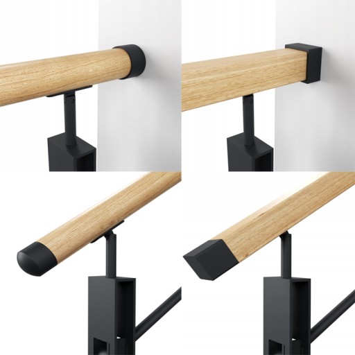 Oferowana balustrada idealnie pasuje do nowoczesnych wnętrz w różnych stylach. Połączenie drewna z metalowym czarnym okuciem okuciem stanowi bardzo modne i efektowne połączenie.
