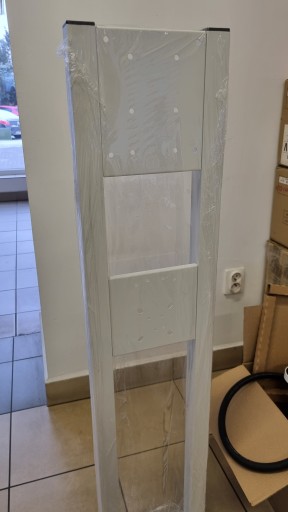 Słupek w kolorze białym wykonany ze stali, lakierowany proszkowo na kolor biały.