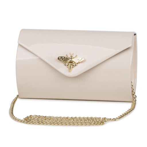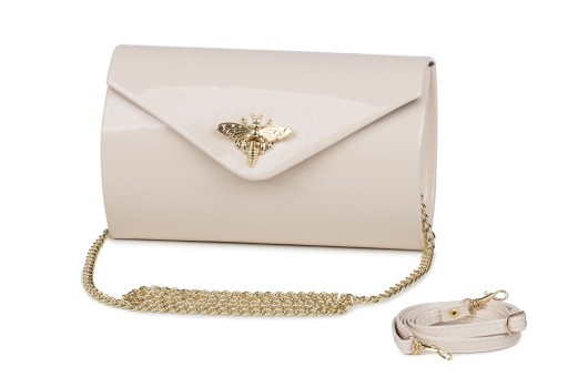 Koperta zapinana jest ozdobną pszczółką, dzięki której zyskuje na swoim eleganckim wyglądzie. Można ją nosić zarówno w ręce, jak i na ramieniu. Do torebki oprócz zwykłego paska dołączono także złoty łańcuszek dodający elegancji. Gwarantujemy trwałość i wysoką jakość produktu. Gorąco polecam.