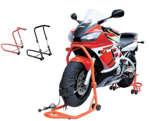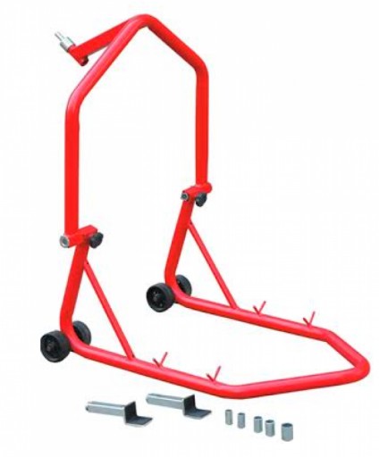 Wyposażony w specjalne koła, chroniące nawierzchnię i ułatwiające podniesienie motocykla. Umożliwia wykonanie wielu prac.