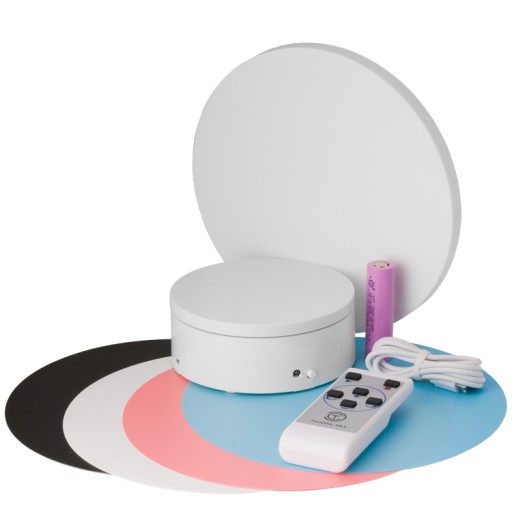 - Mechanizm obrotu pozwala na jednostajny i precyzyjny ruch fotografowanego/filmowanego obiektu wokół własnej osi