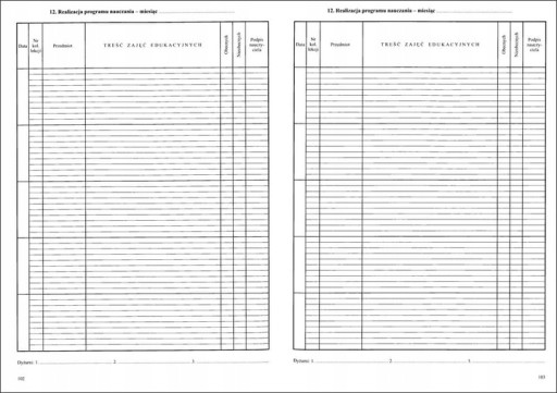 Dziennik zajęć szkoły stacjonarnej A4 (172 str.), zakładka na 42 uczniów, twarda oprawa skóropodobna, różne kolory okładek.