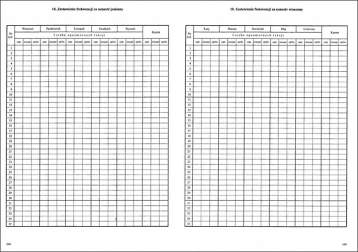 - Zestawienie obecności uczniów (słuchaczy) na zajęciach.