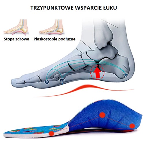- SYSTEM TRZYPUNKTOWEGO WSPARCIA ŁUKU STOPY chroniący między innymi przed płaskostopiem podłużnym