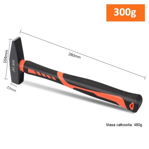 Zestaw 4 młotków ślusarskich o masie: 100, 200, 300, 500 g.