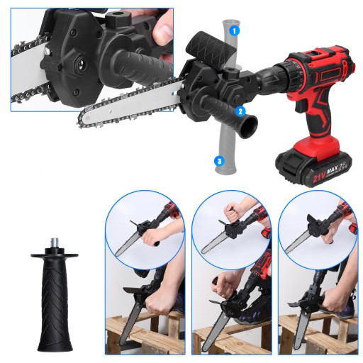 Czy chcesz zmienić swoją wiertarkę elektryczną w elektryczne piły łańcuchowe? Następnie możesz wypróbować to modyfikujące akcesorium. Dzięki temu zestawowi akcesoriów można uzyskać elektryczne piły łańcuchowe, modyfikując wiertarkę elektryczną, zamiast kupować nową. Jeśli szukasz tego produktu, przyjdź i spróbuj, nie zawiedzie Cię.