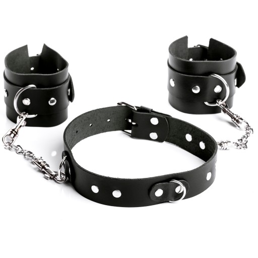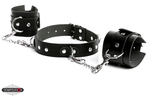 Obroża wąska z kajdankami TEMPTATION z naturalnej skóry