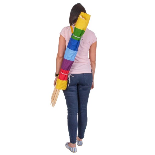 Po skończonym wypoczynku parawan można złożyć w formę torby, która dzięki taśmie do noszenia na ramieniu ułatwi jego transportowanie.