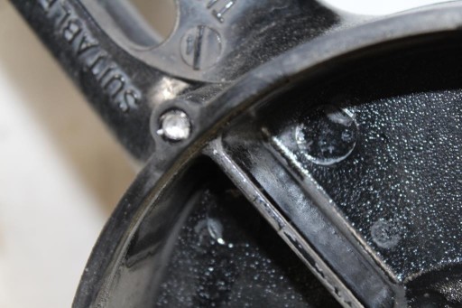 OPONA DO WYMIANY, FELGA POSIADA URWANE DWIE ŚRUBY MOCUJĄCE BLASZKĘ ZABIERAKA, RYSY I OTARCIA.)