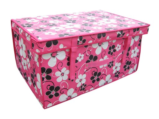 Текстильный сундучок, коробка, контейнер, цветы, розовый, XL