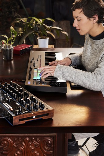 - Kształtuj Twoje brzmienie – Panuj nad instrumentami i efektami używając ośmiu obrotowych enkoderów i 9 faderów 45mm (tylko w modelu 49 i 61).