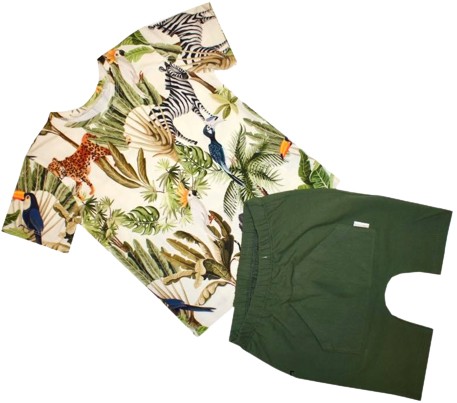 BAWEŁNIANY KOMPLET JUNGEL: T-SHIRT + KRÓTKIE SPODENKI.