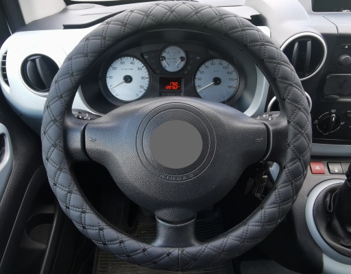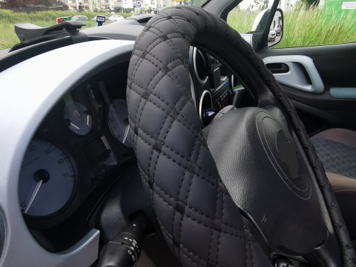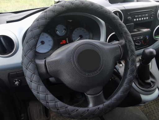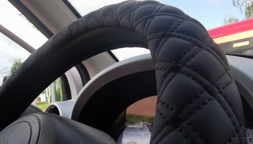 Pokrowiec na kierownicę z wysokiej jakości materiałów (ekoskóra pikowana).