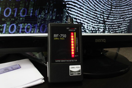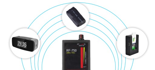 Wykrywacz RF-750 to urządzenie, które z łatwością pozwoli Ci na wykrycie jak i zlokalizowanie większości dostępnych na rynku aktywnych urządzeń szpiegujących tj np.:
