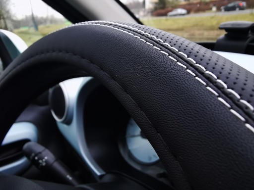 Pokrowiec na kierownicę z wysokiej jakości materiałów (ekoskóra pikowana).