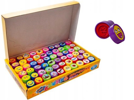 60 SZTUK W ZESTAWIE - w opakowaniu znajduje się aż 60 stempelków o różnych wzorach co gwarantuje Twojemu maluchowi wielogodzinną interesującą zabawę. Stempelki posiadają wzory takie jak zwierzątka czy emotikony.