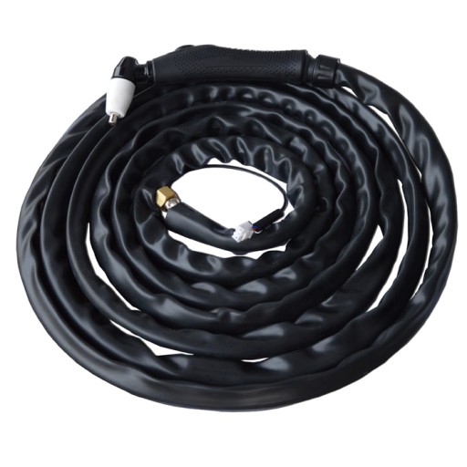 Urządzenie wyposażone jest w zintegrowany uchwyt 5m standardu ESAB z zajarzaniem dotykowym oraz wbudowany zespół przygotowania powietrza z reduktorem i manometrem umożliwiający regulację i kontrolę ciśnienia powietrza z panelu sterowniczego.