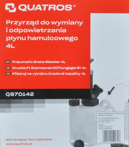 UNIWERSALNY ZESTAW DO ODPOWIETRZANIA HAMULCÓW I WYMIANY PŁYNU 4L