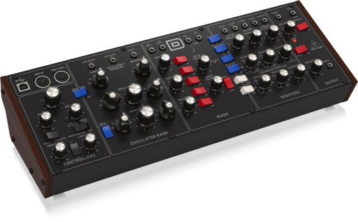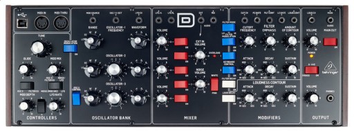 Behringer Model D to odtworzony, legendarny syntezator analogowy z 3 generatorami VCO, filtrami drabinkowymi, LFO, zamknięty w obudowie w standardzie eurorack.