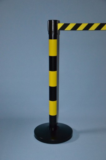 Do zaoferowania mamy słupki odgradzające przemysłowe żółto-czarne (słupki malowane proszkowo na kolor czarny z 3 wyklejonymi pasami w kolorze żółtym) z taśmą ostrzegawczą żółto-czarną o długości 4 m - długość taśmy jest płynnie regulowana poprzez mechanizm samo-zwijający.