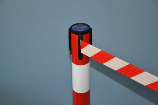 Do zaoferowania mamy słupki odgradzające przemysłowe biało-czerwone (słupki malowane proszkowo na kolor czarny z 3 wyklejonymi pasami w kolorze białym) z taśmą ostrzegawczą biało-czerwoną o długości 4 m - długość taśmy jest płynnie regulowana poprzez mechanizm samo-zwijający.