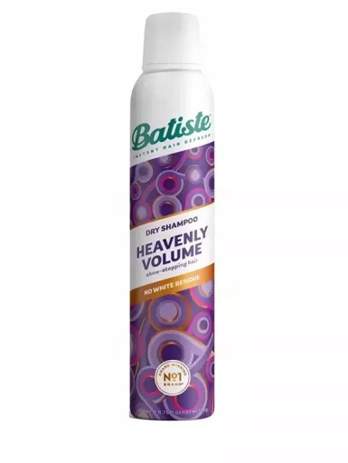 Suchy szampon ma formę aerozolu, dzięki czemu łatwo go równomiernie aplikować, a opakowanie chroni zawartość przed działaniem warunków atmosferycznych, sklejaniem się lub rozsypaniem. Natychmiast odświeża włosy bez użycia wody jednocześnie zwiększając ich objętość i unosząc je u nasady, tym samym ułatwiając stylizację. BATISTE HEAVENLY VOLUME stosowany jako produkt do stylizacji można użyć miejscowo na poszczególne pasma włosów, co przedłuży trwałość ewentualnego upięcia.