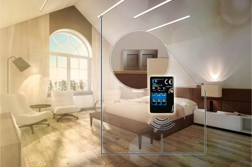 Nadajnik pozwalający na sterowanie innymi urządzeniami za pomocą przycisków fizycznych i wirtualnych.