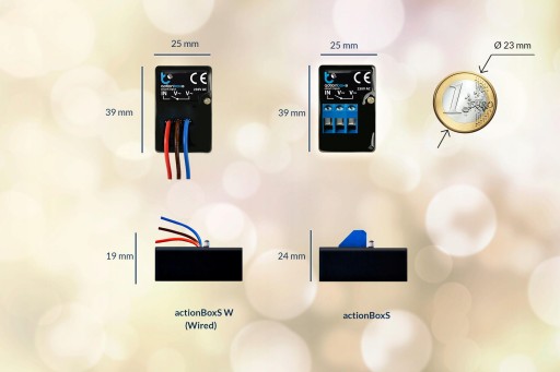 - Wymiary: actionBoxS: 25 x 39 x 24 mm || actionBoxS W (Wired): 25 x 39 x 19 mm