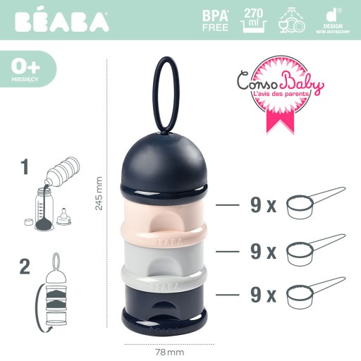 DARK BLUE, GRAY, PINK pojemniki na mleko w proszku Beaba
