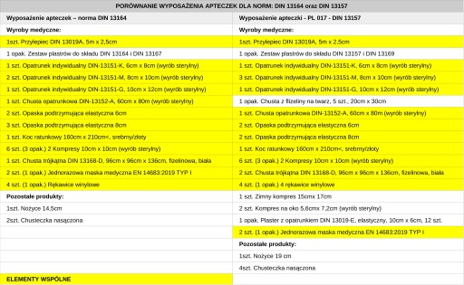 ✅ Skład apteczki zgodny z normą PL 019 - DIN 13164
