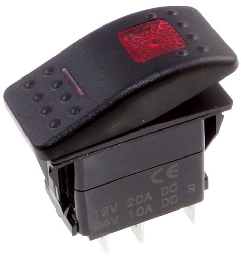 Przełącznik Carling ON-OFF 2-poz 5-pin 2 LED czerwone, SW-CSW-8-RED