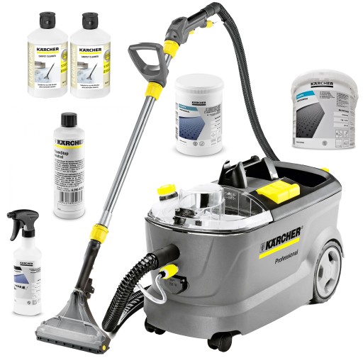 Przedmiotem sprzedaży w niniejszej ofercie jest: 1x Karcher Puzzi 10/2 w wyposażeniu standardowym (dokładne wyszczególnienie w sekcji Wyposażenie Standardowe) + dodatkowo zestaw dodatków o nazwie DETERGENT XXL GRATIS: 1x środek piorący w proszku RM 760 carpet pro classic 10kg; 1x uniwersalny odplamiacz RM 769 500ml; 2x płyn RM 519 1l, 1x środek do czyszczenia dywanów RM 760 800g, 1x Środek odpieniający FoamStop KARCHER 125ml.