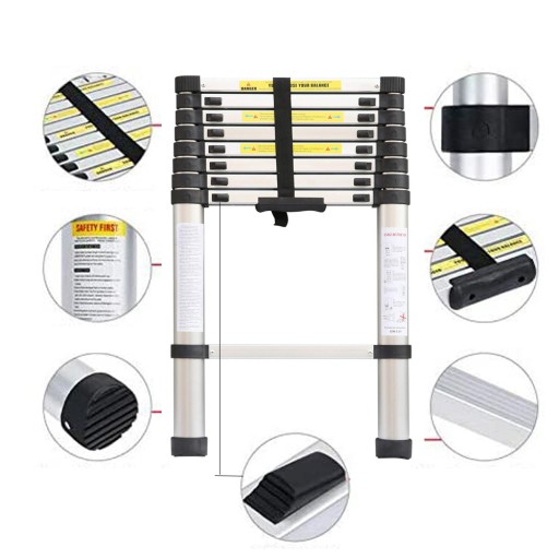 - Składana drabina teleskopowa o długości 2,6 m (8 stóp5);