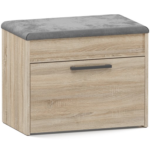Komfortowa szafka na obuwie z tapicerowanym siedziskiem oraz schowkiem na gadżety.