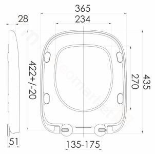 Deska sedesowa prostokątna, wykonana z duroplastu. Bardzo ciężka – waży ponad 2 kg , zaliczana jest do desek z segmentu Premium i przeznaczona jest do ceramik z wyższej półki cenowej. Deska wyposażona jest w zawias metalowy, wolnoopadający z szybkim wypinaniem.