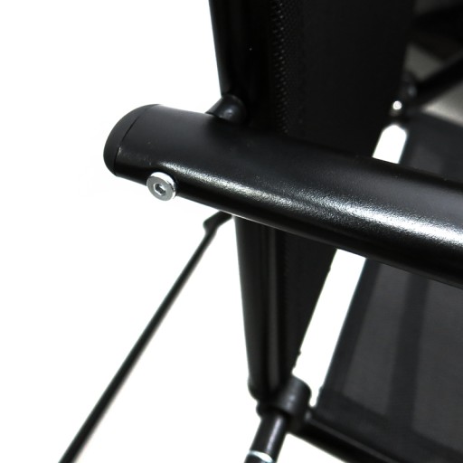 - Nowoczesne, stylowe którego rama wykonana jest z trwałego metalu natomiast siedzisko z przewiewnego i mocnego materiału.