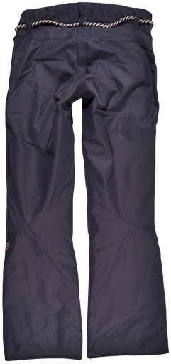 Damskie narciarskie spodnie zapinane na suwak i zatrzaski. Dodatkowo spodnie można regulować paskiem i rzepami na biodrach. Z przodu dwie kieszenie zapinane na suwak. Nogawki zaopatrzone w łapacze śniegu, zapinane u dołu na zatrzaski. Kolor granatowy.