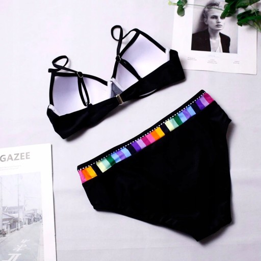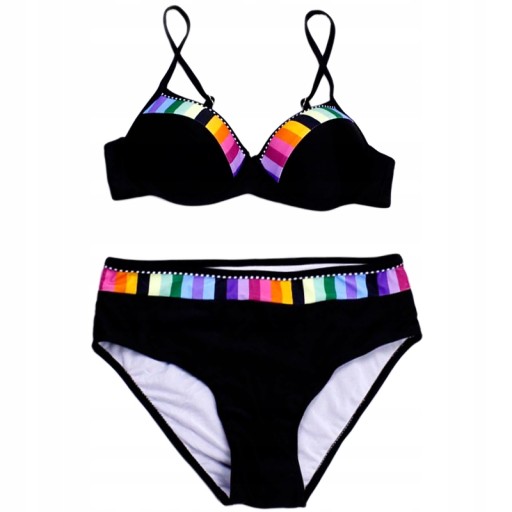 КУПАЛЬНИК БИКИНИ ИЗ ДВУХ ЧАСТЕЙ, ЧЕРНЫЙ, ЦВЕТНЫЕ ВСТАВКИ ПУШ АП, S 36