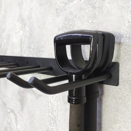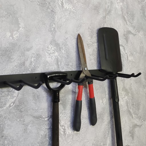 Wieszak pomaga bezpiecznie zorganizować miejsce dla narzędzi ogrodowych.